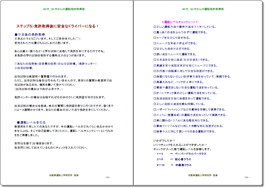 ■免許取得と運転レベルチェックシートの解説ページの一部です↓↓